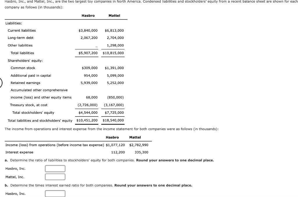 Solved Hasbro Inc And Mattel Inc Are The Two Largest Chegg Com